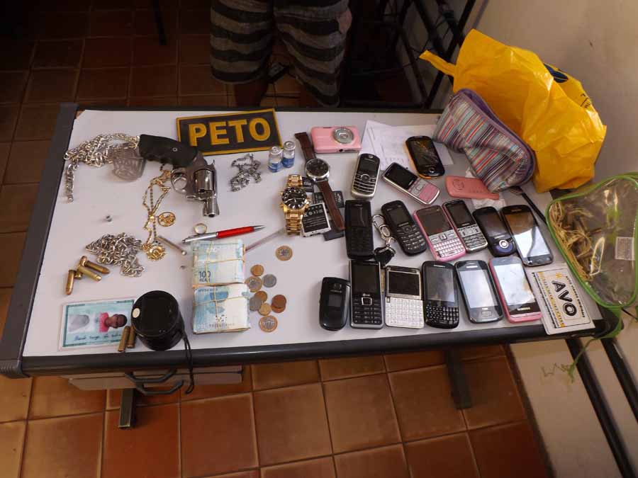 Além da arma foi encontrado com Emerson: 06 munições de 38 intactas;18 munições de 38 deflagradas; 02 munições de pistolas .380 deflagradas;15 aparelhos celulares; 02 relógios de pulso; 01 câmera fotográfica; pulseiras e correntes de metal e a quantia de R$ 1.328,00 (mil trezentos e vinte e oito reais). Emerson foi conduzido ao presidio de Feira de Santana.