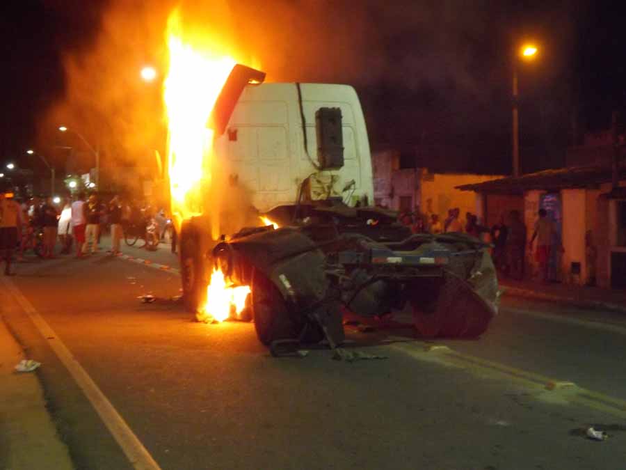 Populares se revoltaram com o acontecido, e atearam fogo no veiculo causador da tragédia. A policia foi acionada para acalmar os ânimos, mas o caminhão de placa KNE-9846 foi deslocado e incendiado por populares revoltadas.