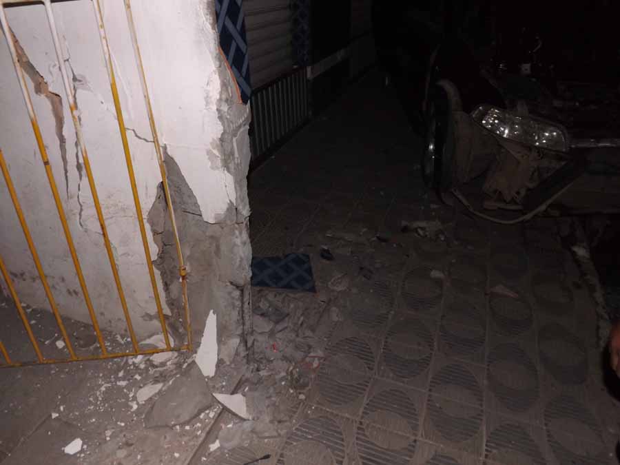 Um muro e dois veículos estacionados foram atingidos pelo caminhão desgovernado.