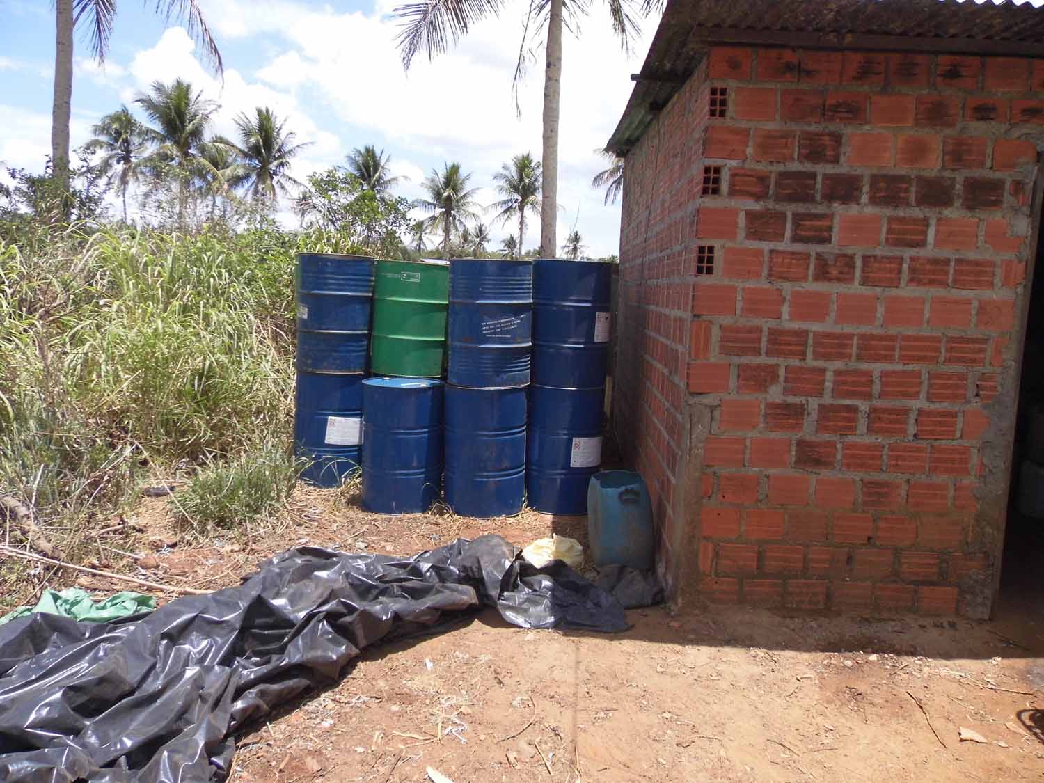 O local utilizado para as adulterações é uma pequena propriedade rural, que estava preparada para o plantio, e com alguns animais em um pequeno curral.