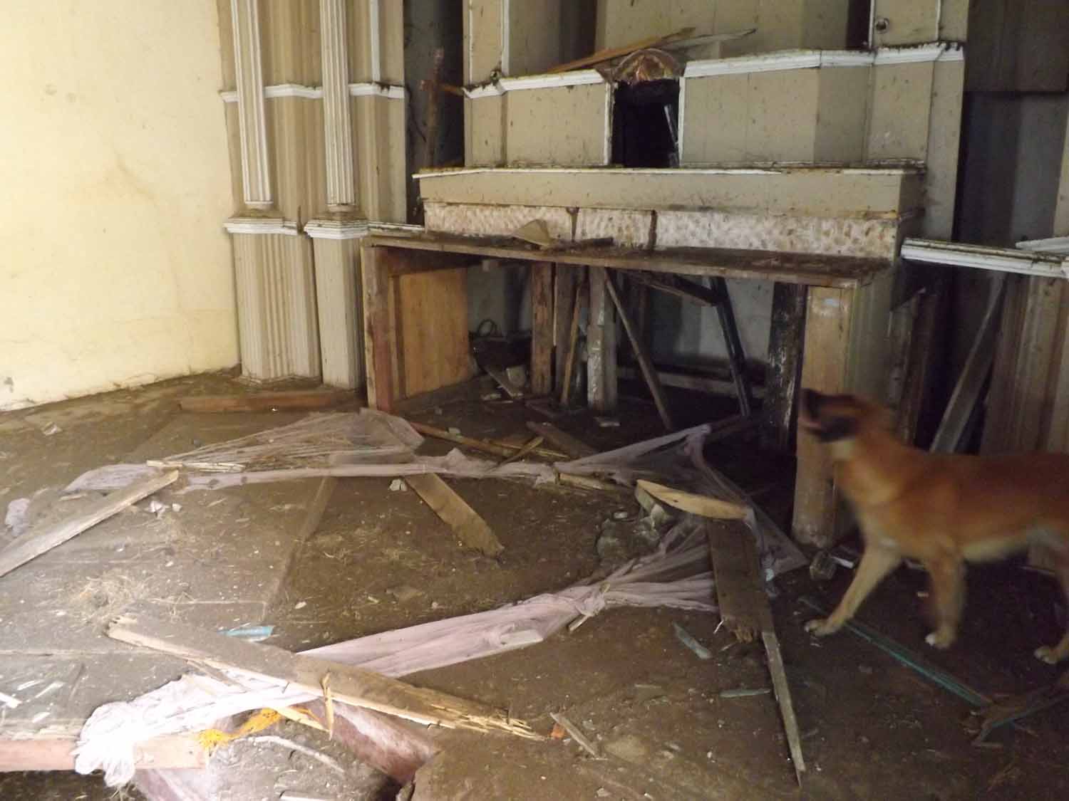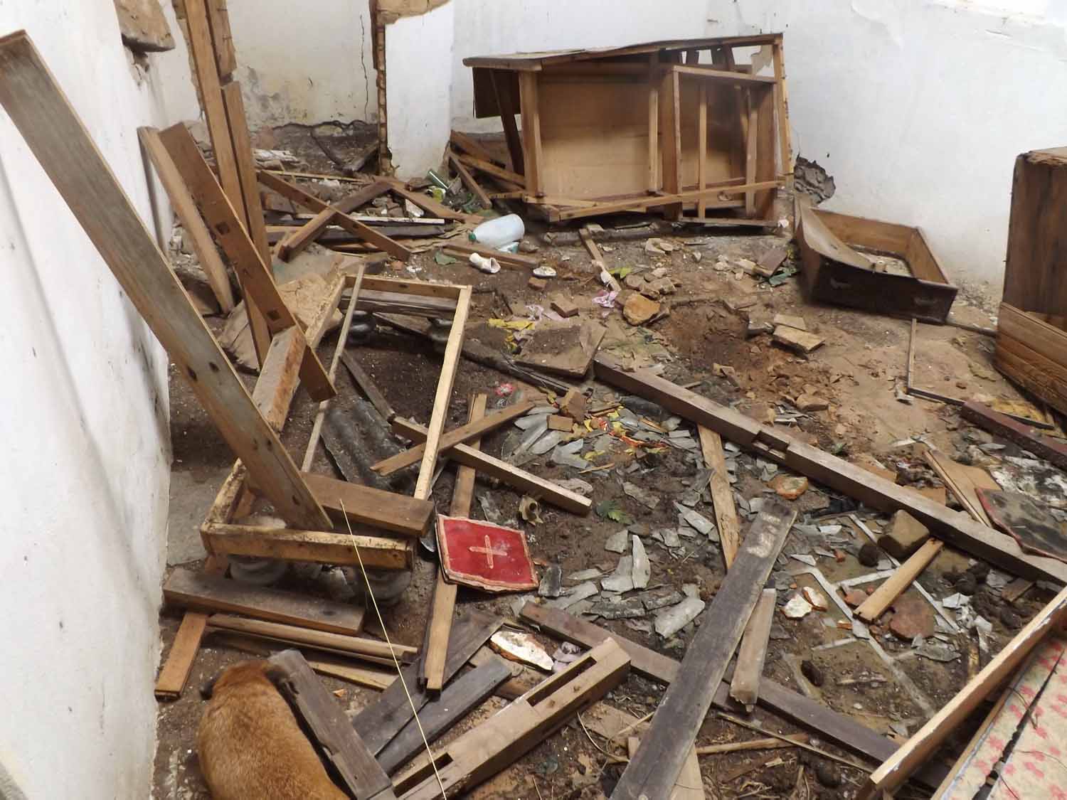 Animais tem livre acesso ao local, tornando o lugar muito sujo, repleto de fezes dos diversos bichos, entre morcegos, pássaros, gado e cães.