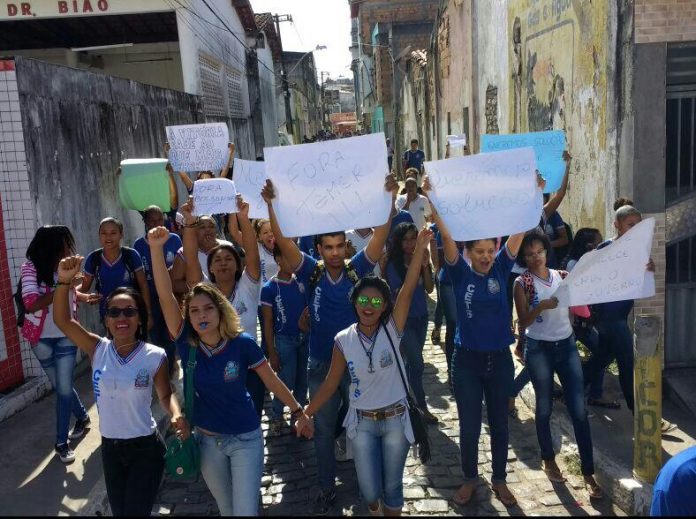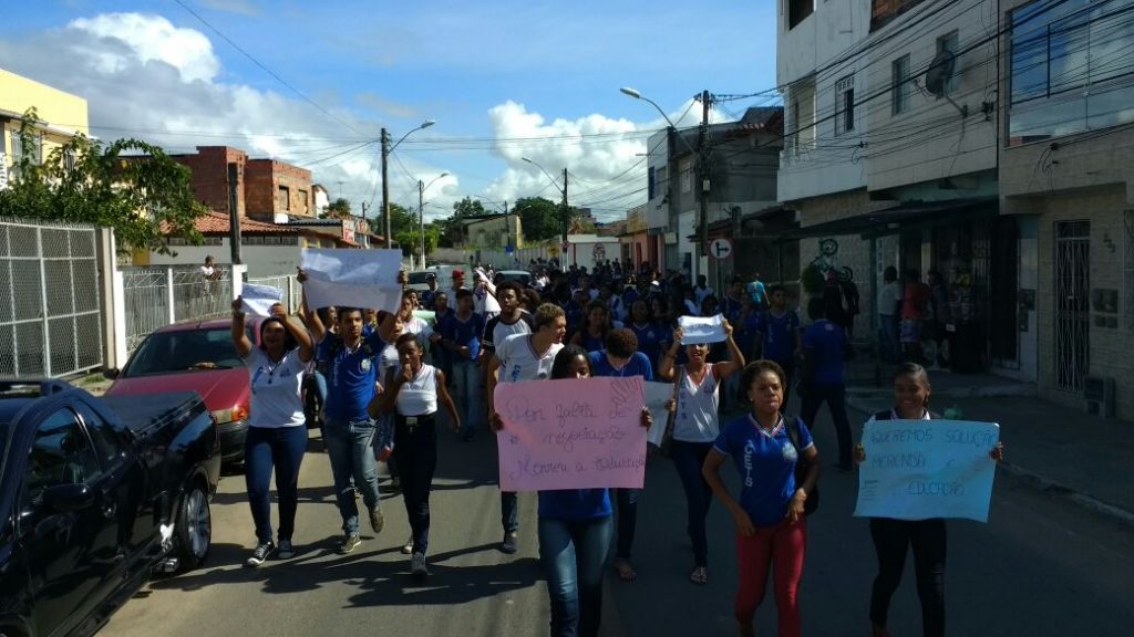Alunos do Colégio Estadual Teodoro Sampaio, em Santo Amaro, realizaram na manhã desta sexta-feira, uma manifestação em apoio dos funcionários do colégio que estão sem receber salários há alguns meses.